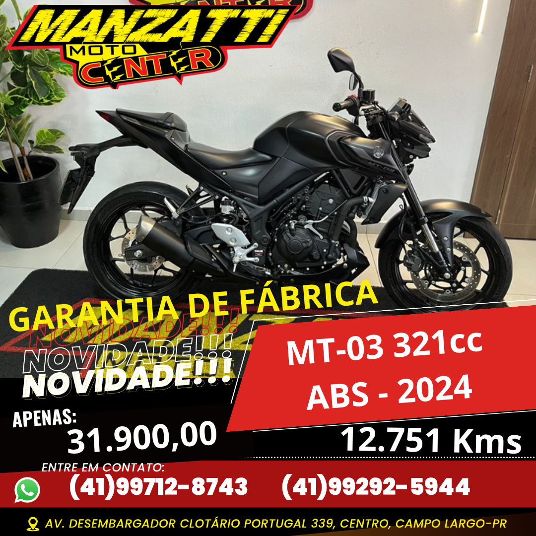Moto Yamaha MT-03 ABS 321cc Preta 2024 - Garantia de Fábrica